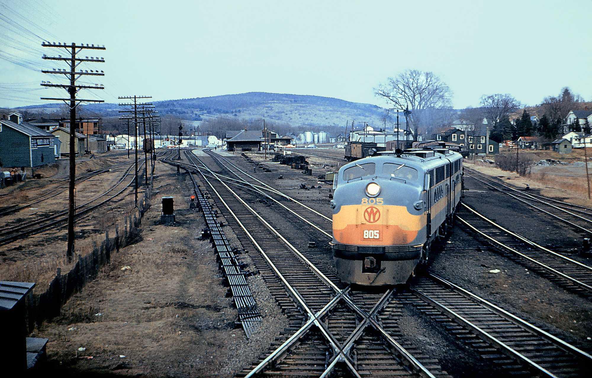 Sidney-O-&-W-Engine-805-Pulling-Out-Of-Rr-Yard